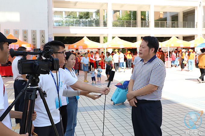 上午9时,我校校长陈德清,市政协副主席、学校副校长唐汉芳,副校长陈农心,副校长赖小景及相关部门负责人来到教学楼中庭,检查指导迎新工作、慰问迎新工作志愿者,并与前来报到的2017级新生、家长亲切交谈。