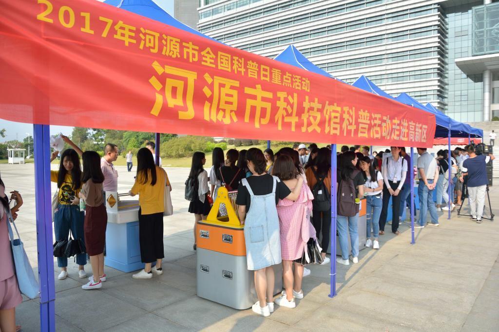 9月19日上午,河源市于高新区管委会广场举办“创新驱动发展•科学破除愚昧”2017年全国科普日活动暨河源市科普示范镇、村、基地授牌仪式。市委常委、副市长、深河指挥部总指挥、市高新区党工委书记王卫,市科协党组书记、副主席陈春林等领导出席了本次活动并讲话,市科普示范单位、我校部分学子等参与了此次活动。