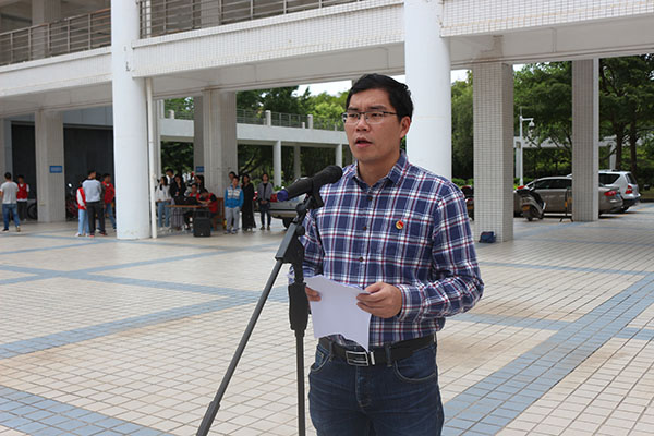 校团委副书记黄志鹏在讲话中指出,此次活动是一次严肃而庄重的教育活动,目的在于使团青年员进一步增强对共青团组织的归宿感、为共青事业奋斗的责任感;进一步加强我校共青团队伍的建设,提高党组织后备军的培养,发挥共青团团员在广大青年中的先锋模范作用;同时,为中华民族伟大复兴的中国梦幸福篇章凝心聚力、勇往直前,共同迎接党的十九大胜利召开。他要求,我校共青团员要强化团员意识,自觉为团旗增辉,为团旗添彩;要珍惜校园生活,勤奋刻苦学习,提高综合素质;要提升“四自意识”,在参与学校改革、发展和建设的事业中建功立业。