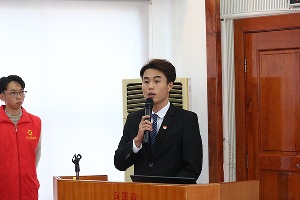 大会在庄严肃穆的国歌声中拉开了序幕。首先,由古伟民老师宣读《河职院2017志愿服务表彰决定》。接着,校学工处吴紫苑科长、工会汤剑冰副主席分别为“三下乡”、“展翅计划”、“周速班”、“电信E修”等受表彰的优秀志愿者代表颁发优秀志愿者证书。随后,“三下乡”、“公交文明劝导”、“国家资助和助学贷款政策下乡行”项目的优秀志愿者代表接连上台发言,他们在归纳相关工作进展情况、统筹安排、取得的成绩、意义后表示,将在今后的学习生活中,努力学习专业知识,积极在志愿服务的生动实践中锻炼、拼搏,实现青春梦想。紧接着,陈晓峰书记对过去一年的志愿服务工作业绩做了总结回顾并传达党的十九大报告中相关的内容要求,他建议,要把志愿者工作放在党的事业中去思考,与党的事业相结合;与培育社会主义核心价值观相结合,注重活动参与的广泛性;把志愿者的精神、热情、专长相结合,通过制度化安排建立长效服务机制。同时他希望,在新时代新征程中,青年学生要勇于在志愿服务中践行新思想,为实现中华民族伟大复兴的中国梦贡献青春力量。