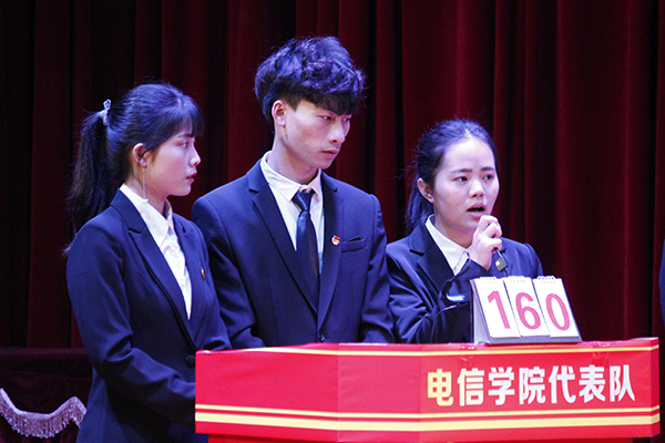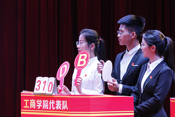 活动在全体人员观看国家安全教育宣讲视频中拉开帷幕。紧接着,分别来自5个二级学院的代表队在必答、讨论、抢答三个环节中展开了激烈比拼。必答环节中,各代表队选手们对答如流,充分展现了选手们对国家安全知识中所包含的核心内容、基本原则、核心要义等的深入了解,折服了现场观众,赢得阵阵掌声。在激动人心的抢答环节中,选手们针锋相对、互不示弱将赛场气氛推向高潮。期间,活动现场播放了2个关于反间防谍的视频,进一步有效地提高了现场观众对我国国家安全内涵和外延的认识,提升了广大师生自觉维护国家安全的责任感和自觉性。随后,在有奖竞答环节中主持人和现场观众进行积极互动,比赛现场精彩纷呈,充满悬念。最终,工商学院代表队以330分的成绩赢得此次比赛的冠军。