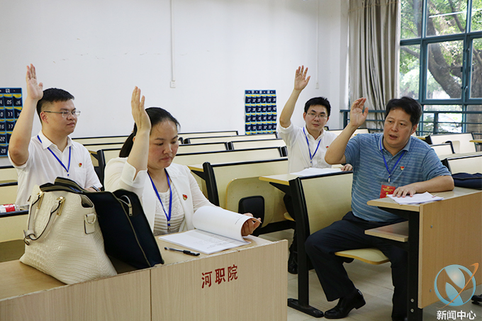 7月16日下午,中共mksports官方网站登录入口第三次代表大会7个代表团分别在B栋教学楼一楼各教室召开代表团第一次会议,各代表团成员及列席代表参加会议。