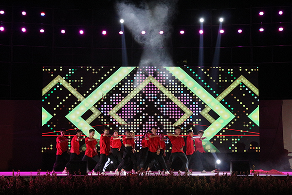 9月19日晚,我校于足球场隆重举行第十三届校园文体艺术节开幕式暨“迎新生、贺中秋、庆国庆”文艺晚会。学校党委书记韦荣,校长陈德清,宣传部部长赖新优,学工处处长何志聪,艺术与设计学院院长杜伟祥,团委书记陈晓峰、副书记黄志鹏,河源客天下水晶温泉国际旅游度假区总经理伍云星及各二级学院团总支书记,全体辅导员,各大组织学生干部以及2018级全体新生共同参加了此次晚会。