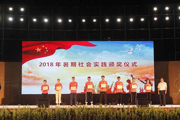 在志愿者表彰环节中,全体师生共同观看了我校2018学年暑期三下乡志愿服务工作的宣传视频,并对其参加社会实践活动的志愿者进行表彰,我校党委韦荣书记,陈德清校长分别为志愿者代表颁发2018年暑期社会实践活动先进个人荣誉证书。
