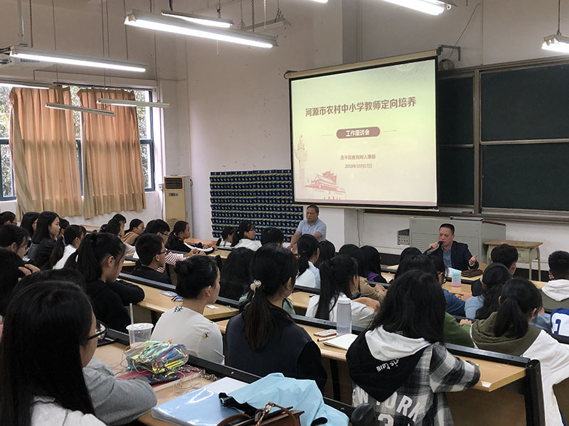 2014年起,在市委市政府的正确领导下,由市教育局牵头,市县教育局、财政、人社、编办等部门负责政策落实,河职院负责培养,本着培养优秀农村小学师资,稳定农村小学师资队伍,更好服务地方的初衷,落实开展维持5年的河源市农村小学教师定向培养任务。截至2018年,已招录了5届委培生,明年将有第一批委培生毕业,上岗就业。今年,我省也开始开展公费定向培养粤东西北中小学教师试点工作,在这个特殊的时间节点,河源市教育局召开全市中小学教师定向培养工作座谈会,旨在总结我市定向培养工作,部署省公费定向培养工作,谋划下一步工作打算。