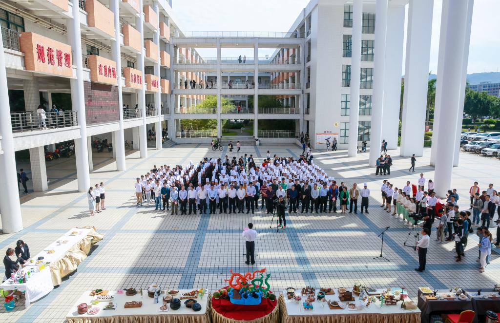 随后,副市长边立明,我校党委书记韦荣等领导共同为河源市乡村振兴学院、河职院客家菜师傅培训学院揭牌。