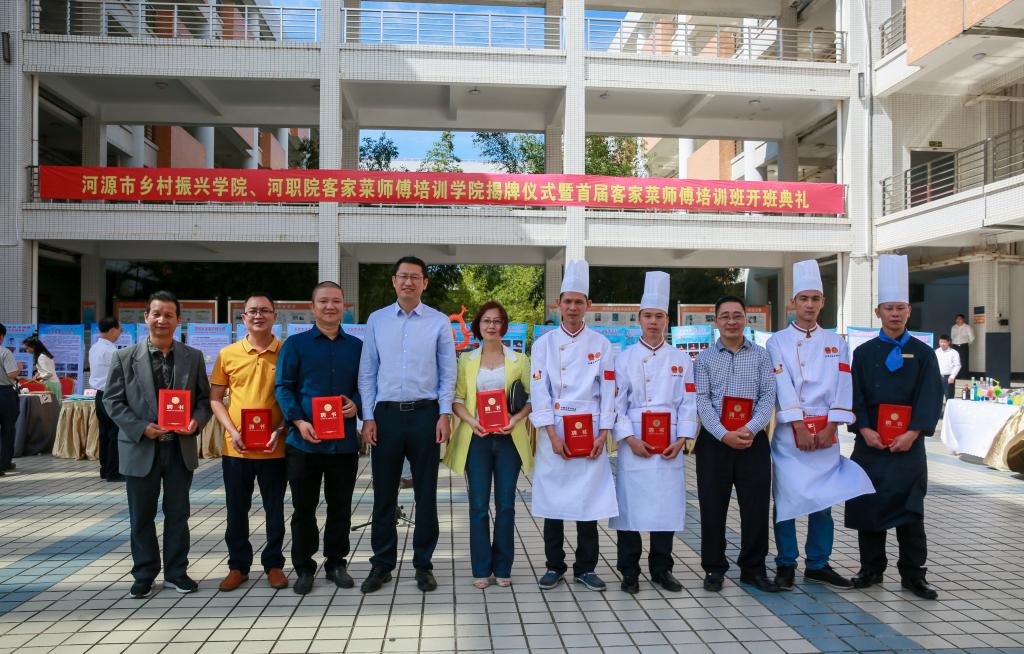 共同为河源市乡村振兴学院、河职院客家菜师傅培训学院揭牌
