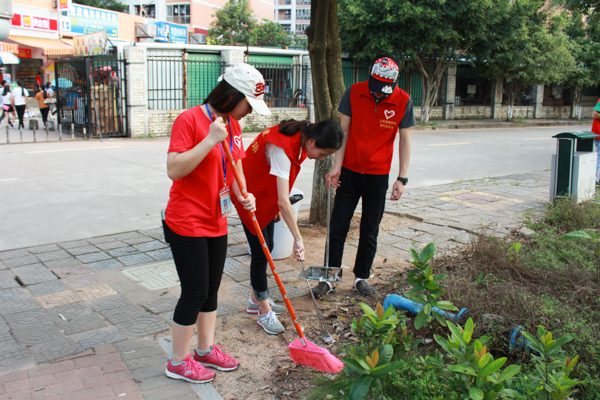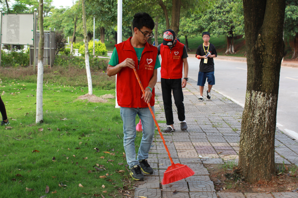 我校志愿者们高举队旗,手拿清洁工具分别在贤能广场、荟萃湖周边、教学楼、实训中心、学生饭堂等校内每个角落及学校创文责任区开展全方位、地毯式的卫生清洁活动。校园内一批批身穿“红马甲”的身影所散发的青春气息洋溢了整个校园,活动氛围浓厚,并取得良好效果。