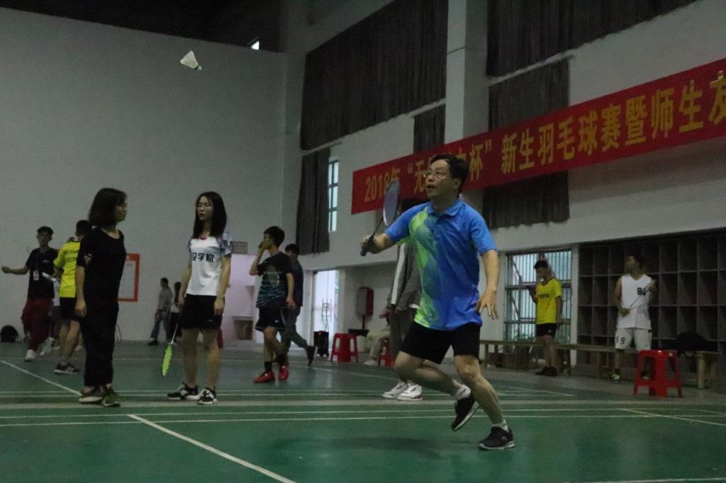 活动伊始,总裁判长宣布了此届新生羽毛球赛比赛结果,并由各领导及老师为获奖的代表队进行颁奖。在全体人员合影留念后,精彩的师生羽毛球友谊赛拉开序幕。友谊赛分为男子双打、男子单打和混合双打三项,在三个场地同时进行。本着“友谊第一、比赛第二”的原则,参赛师生在比赛中积极拼搏,高远球、搓球、扣杀、吊球等各路球技被师生们演绎得淋漓尽致。赛场上选手们挥洒着汗水,享受着比赛的乐趣,迸发着对运动的热情,选手们高超的球技博得了场外师生们的阵阵掌声和一片喝彩。