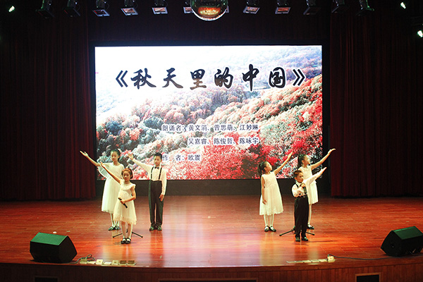 在启动仪式后,台海两岸美文朗诵会正式开始。无论是那般柔软轻盈,绵绵不断充满美妙诗情画意的《雨说》;抑扬顿挫饱含深情地讲述抗战时期英雄之城与巴渝儿女的动人往事的《请铭记,雾重庆》;那生动灵秀演绎了宝岛阿里山高山行云流水、清新灵动的笛子独奏《高山青》;还是那深沉有力、激情豪迈歌颂祖国壮丽山河、文明历史、伟大民族精神的《我骄傲,我是中国人》;或是那龙飞凤舞脉搏相连的集合《大写的中国》。一首首春弦夏诵,声情并茂的诗歌朗诵纷至沓来,为现场观众呈现了一场视听盛宴,展演选手的投入朗诵和生动表演,赢得现场掌声阵阵。最后,活动在领导老师与参演人员合影留念中拉下帷幕。
