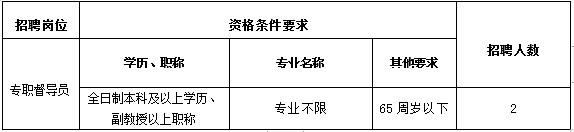 现因学院发展需要,结合学院用人规划和实际需求,拟面向全国公开招聘退休专职督导员2名。现将有关事项公告如下: