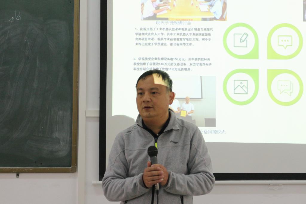 学院班子就各分管工作分别进行总结,对2017-2018学年教职工绩效结算、2018年年终绩效的发放进行说明,廖晓明副院长对期末成绩的录入、实训室的管理、技能竞赛的集训、课程评教等工作进行强调,黄亮副书记要求假期期间要按时完成就业工作、关注学生假期去向及做好实习学生的安全指导等。钟建坤院长对学院2018年工作进行了全面的总结,希望大家在发展中持续改进,下学期要做好毕业设计的指导与评选、学院校友会、实训室的搬迁等各项工作。