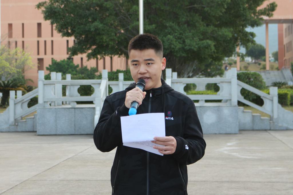 庄严的升旗仪式结束后,来自2017级食品营养与检测专业1班的黄俊豪同学作为学生代表进行发言。黄俊豪同学号召大家要向上向善、砥砺前行,做新时代弘扬雷锋精神的模范践行者。