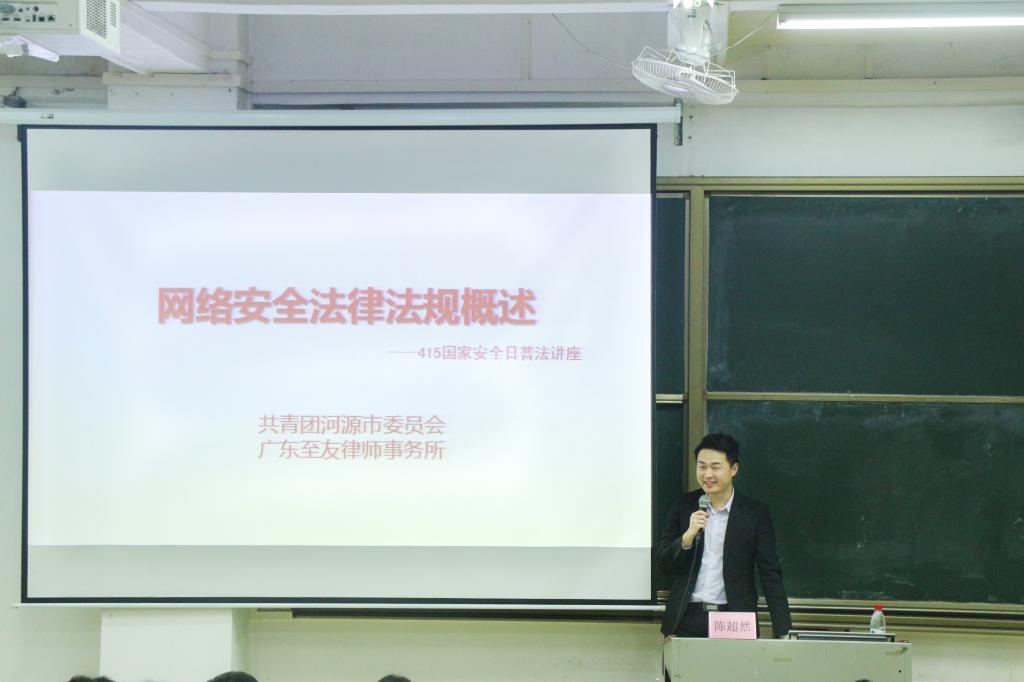 4月16日晚19:30,在第四个“4.15”全民国家安全教育日到来之际,由mksports官方网站登录入口和源城区法律援助处联合举办的“4.15”全民国家安全教育日普法讲座在教学楼D107教室举行。广东至友律师事务所陈超然律师应邀担任此次普法讲座的主讲人,人文学院办公室主任刘少燕老师、团市委有关人员、mksports官方网站登录入口法律诊所、法律协会师生以及众多来自不同专业的学生参加了此次讲座,现场气氛热烈。