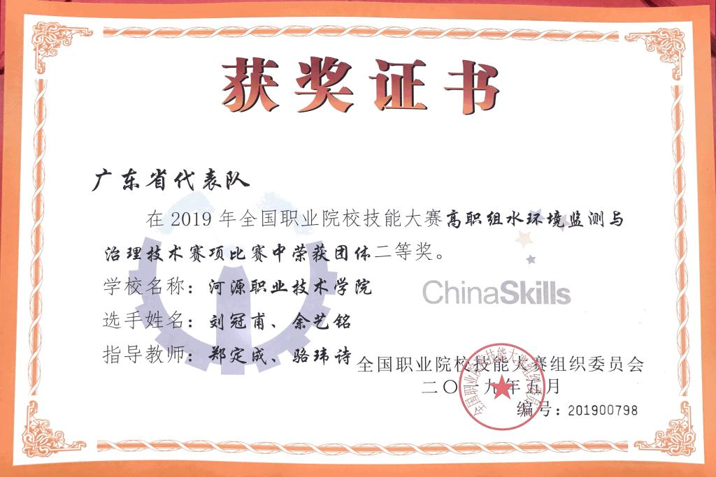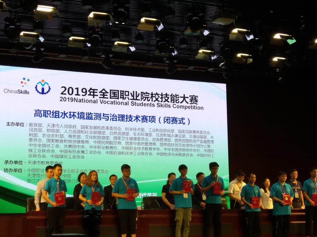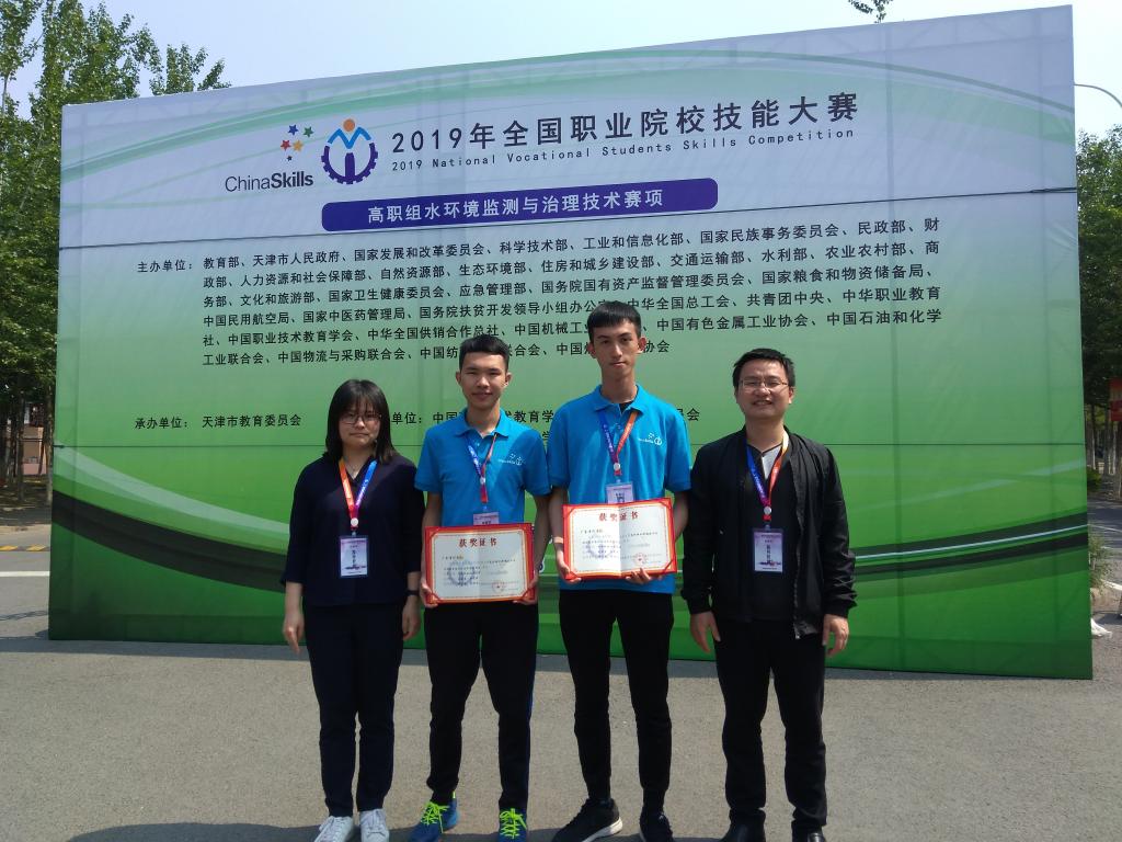 5月11日上午9点,2019年全国职业院校技能大赛高职组水环境监测与治理技术赛项闭幕式在天津现代职业技术学院举行。本次比赛于5月9日至10日在天津现代职业技术学院举行,共有来自全国26个省市的79支队伍共158名选手参赛。mksports官方网站登录入口安全健康与环保专业的刘冠甫、余艺铭两位同学代表广东省参加比赛,在郑定成、骆玮诗两位老师的指导下,在比赛中沉着冷静,克服了一系列困难,以全国排名第十二的成绩获得高职组团体二等奖,为学校争得荣誉。