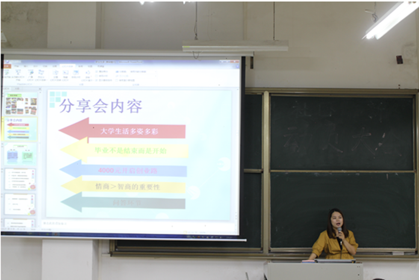 此次讲座特邀大拇指教育、童尚教育、蓝天教育三家托管培训机构的总负责人郑瑶妹老师为学生作创业心得分享。会上,郑老师从自身的创业历程和个人经验分享等方面对同学们提出了殷切期盼,讲座内容涉及大学生活规划、考证、专业实践、个人素质以及情商的重要性等与学生息息相关的方方面面。郑老师表示,无论做什么事都要做好规划,确立目标,同时,要具备吃苦耐劳的精神。
