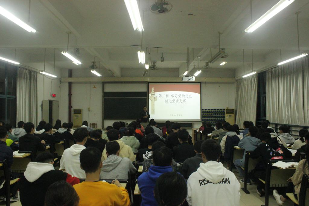 2019年11月26日晚上,电信学院在教学楼C201开展第三十七期入党积极分子培训班专题党课第三课——“学习党的历史,铭记党的光辉”。参加人员有第三十七期电信学院入党积极分子培训班全体学员、负责学生党支部工作全体成员。党课由学生党支部书记杨日奎主持,丁家龙老师主讲。