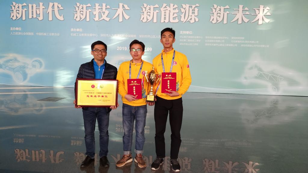 中华人民共和国人力资源社会保障部主办的2019年中国技能大赛——全国新能源汽车关键技术技能大赛决赛于2019年12月3日至8日在深圳坪山燕子湖国际会展中心举行。我校汽车智能技术专业2017级学生陈远球、赖俊达代表广东省参加了“汽车智能化技术”赛项,获得了该赛项学生组第一名的好成绩,同时,mksports官方网站登录入口被授予“冠军选手单位”荣誉称号。