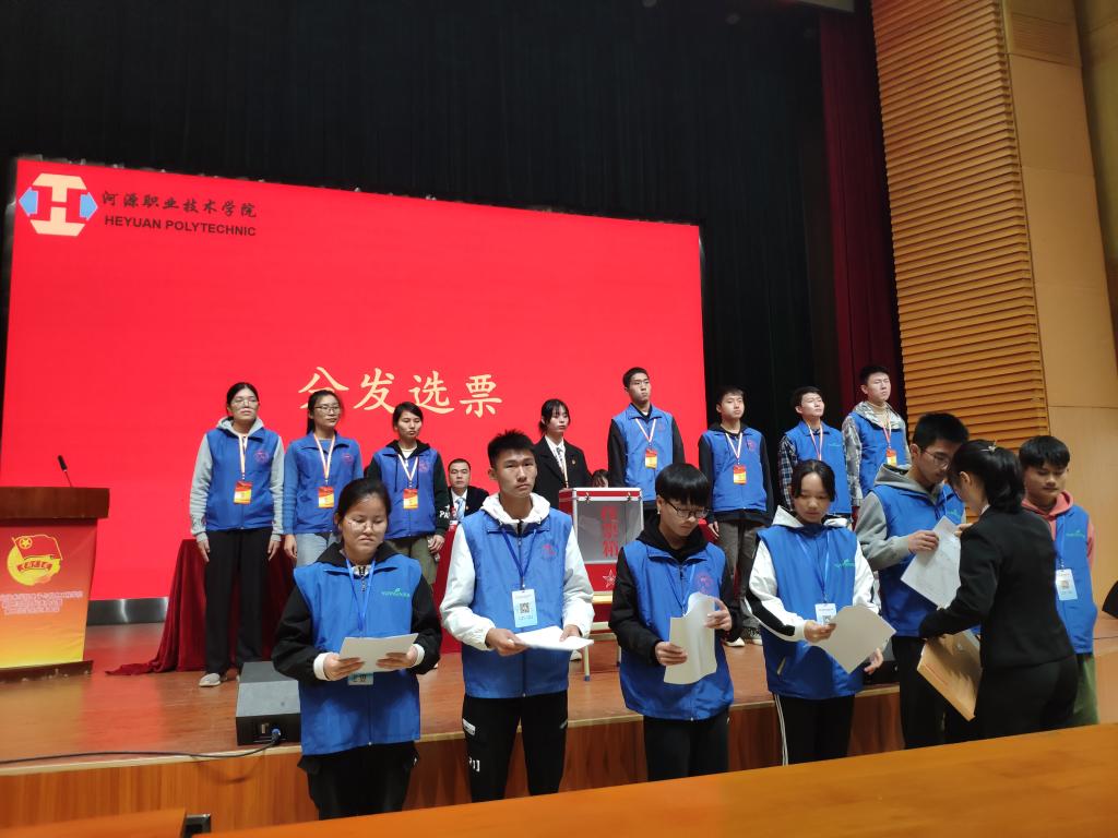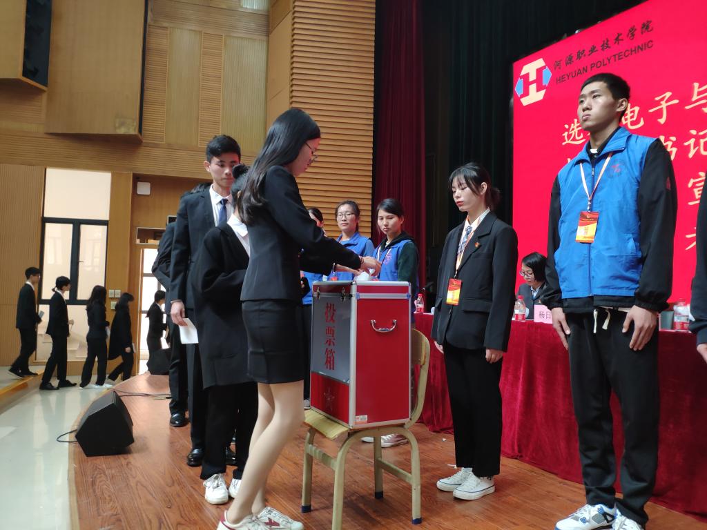 最后,由工作人员汇报选举情况,主持人宣读选票填写事项,各代表填好表格依次上台投票,总记票人员、监票人员与记票人员进行统计,最后陈冬吟宣布上午议程结束。
