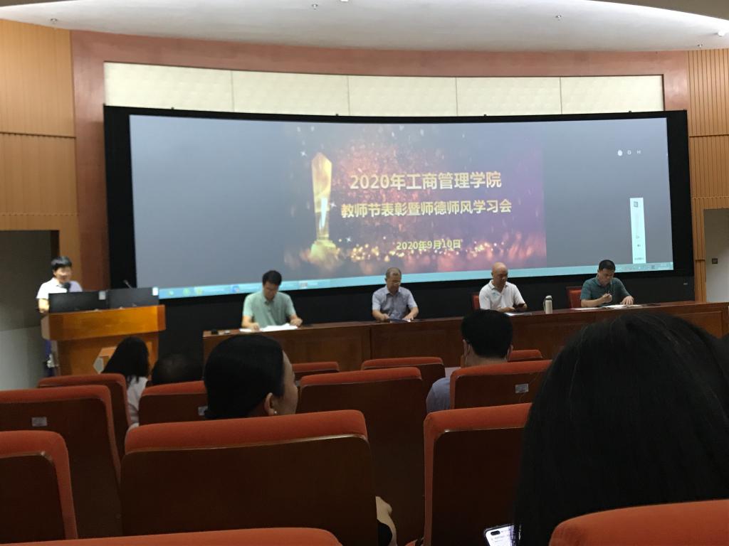 9月10日,工商管理学院召开教师节表彰暨师德师风学习会,全面部署秋季学期开学返校和疫情防控工作。学校党委副书记、纪委书记叶国英,学院领导班子及全体教职工参加会议。
