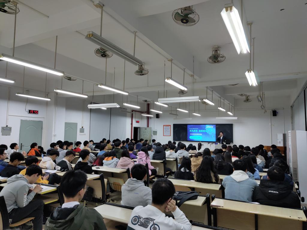 12月22日晚上,电信学院在教学楼C103召开中兴通讯(河源)有限公司招聘宣讲会暨订单班动员会。会议由校企合作办主任高燕主持,中兴通讯南京总部吴晓庆经理、河源基地黄海波经理先后上台宣讲,移动通信技术专业主任谢志能和2021届移动通信技术、应用电子技术等专业的一百六十多位学生参加了会议。