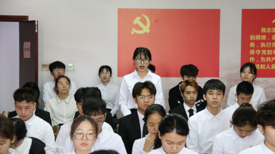 会上,党总支邹东平副书记对新吸收为中共预备党员的54名同志首先表示祝贺。邹书记表示,今年是建党100周年,有幸在100周年之际成为党员是人生非常幸运的一件大事,要求54名同志要把今天发展为预备党员作为人生成长的一件重要事情,用“最美的青春”诠释好自己的责任担当,把大写的”人”字写好;要融入支部活动,融入专业技能展示,通过学习,不断充实自己,做一名合格党员;要严格执行党的各项规章制度,学习党的各项章程,规范自己言行,争做同学们中的模范。