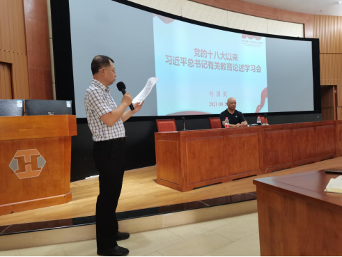 为深入学习贯彻习近平总书记自十八大以来有关教育论述的重要思想,以习近平新时代中国特色社会主义思想为指导,进一步做好学院各项工作,8月27日上午,工商管理学院在学术交流中心一楼3D模拟实训室召开学习贯彻习近平总书记有关教育论述学习会。学校党委副书记、纪委书记叶国英同志,学校纪委和工商管理学院全体人员参加学习会,学习会由学院党总支书记、院长俞彤同志主持。