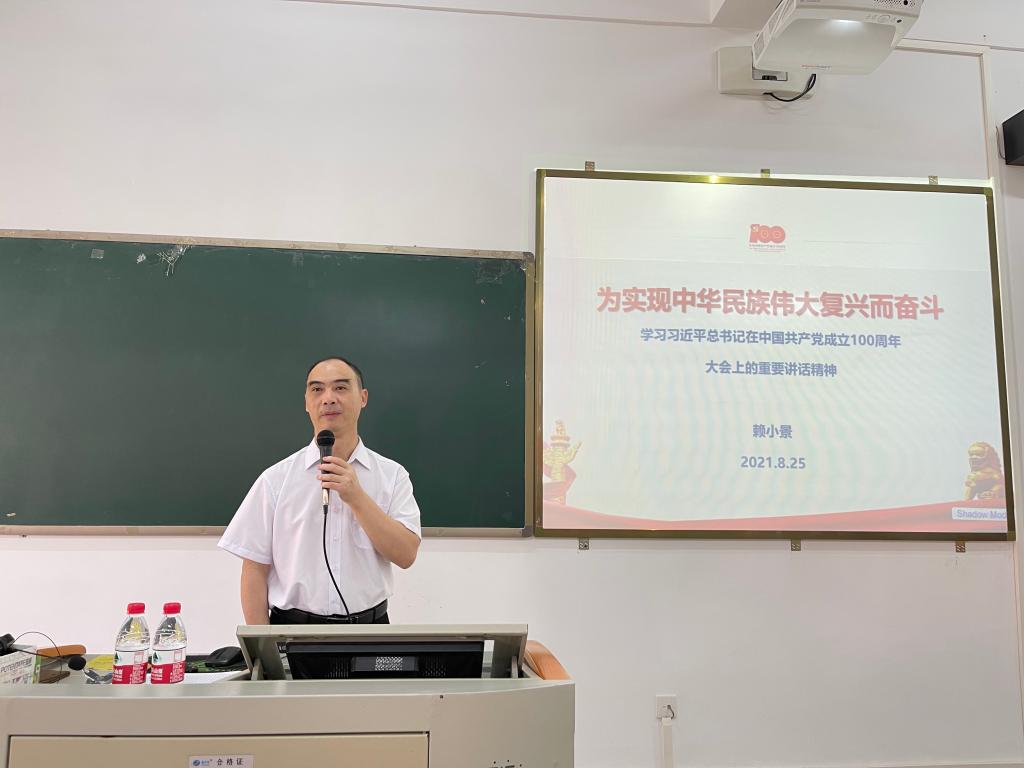 8月25日,赖小景副校长为机电工程学院全体教职工作主题为《为实现中华民族伟大复兴而奋斗》的学习习近平总书记“七一”重要讲话精神的辅导报告,学院全体教职工参加活动。同时,学院对新学期的各项工作进行布置。