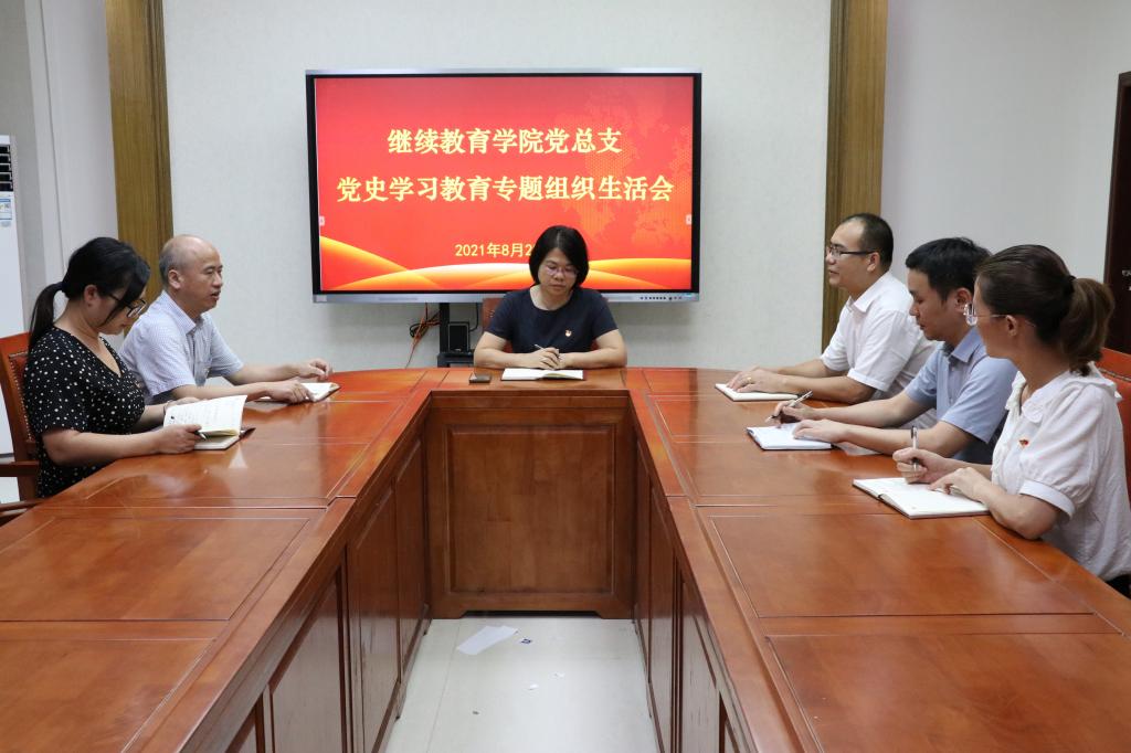 8月25日,继续教育学院党总支召开党史学习教育专题组织生活会。会议由副书记彭仲文同志主持,全体支委及专职组织员参加会议。