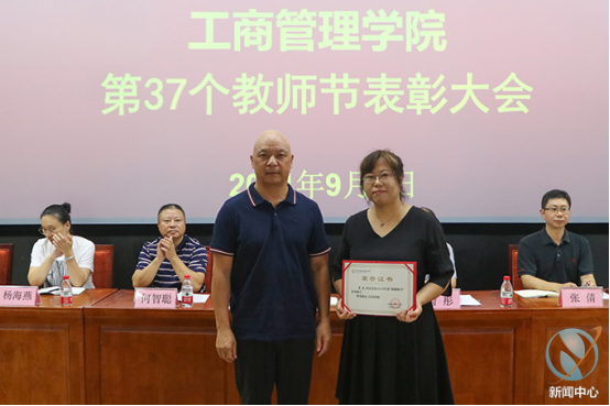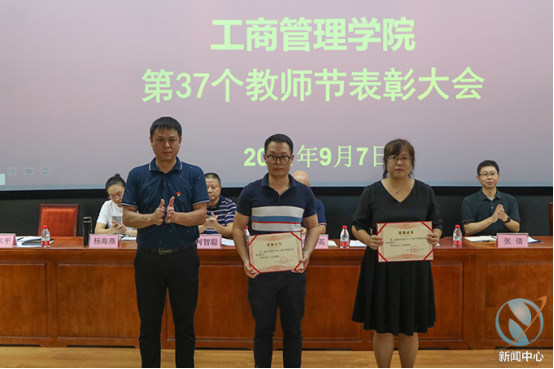 9月7日,工商管理学院在实训三期3D导游模拟实训室隆重召开第37个教师表彰大会。学校党委副书记、纪委书记叶国英,科研处何智聪处长、财务处张倩处长、图书馆杨海燕馆长、监察审计处王俊光副处长以及工商管理学院全体教职工参加表彰大会。