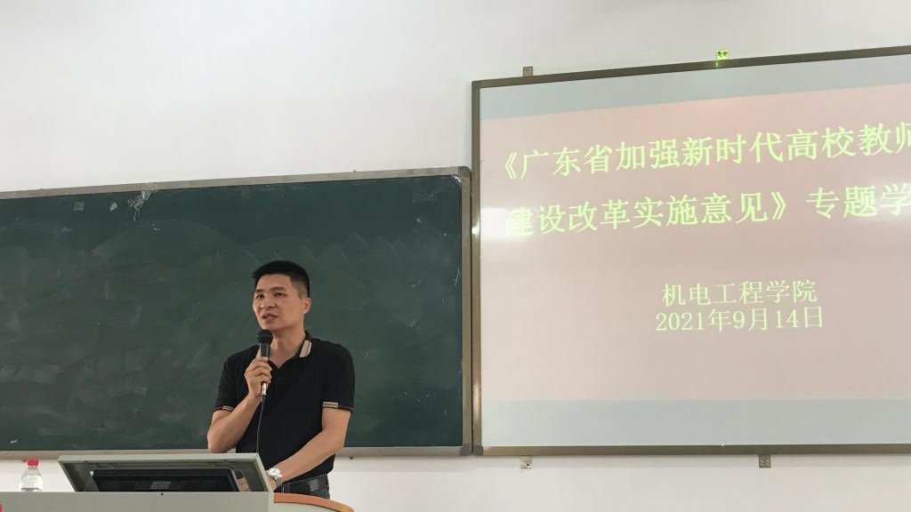 9月14日,机电工程学院在实训楼D312召开《广东省加强新时代高校教师队伍建设改革实施意见》(下称《意见》)专题学习会,学院全体教职工参加会议。