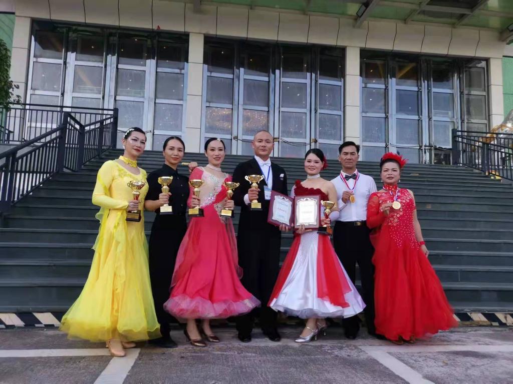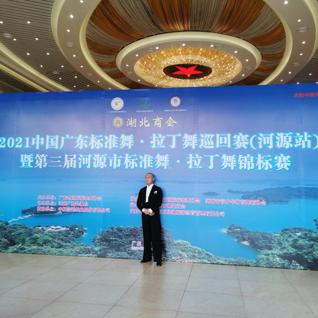 11月20日,2021中国广东标准舞•拉丁舞巡回赛(河源站)在市区迈豪酒店国际会议厅举行,来自广东省高校以及广州市、深圳市、惠州市、河源市等省内的33支代表队300多人参加了209个组别的比赛。我校人文艺术学院邓华荣老师代表学校参加了壮年组华尔兹单项比赛(名次赛)。通过激烈角逐,邓老师勇创佳绩,荣获该项目第一名。