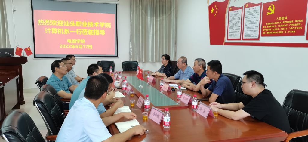 6月17日上午,汕头职业技术学院计算机系刘钦创系主任、谢浩钿副书记、江永池副主任及专业主任一行5人到我校电信学院进行交流。王富宽院长、徐国辉副书记、周永福副院长等相关人员参加了活动。