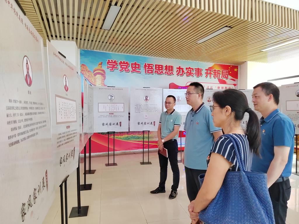 专题理论学习完后,支部全体党员统一前往学校图书馆二楼大厅参观“中华名人-家风家训”展。