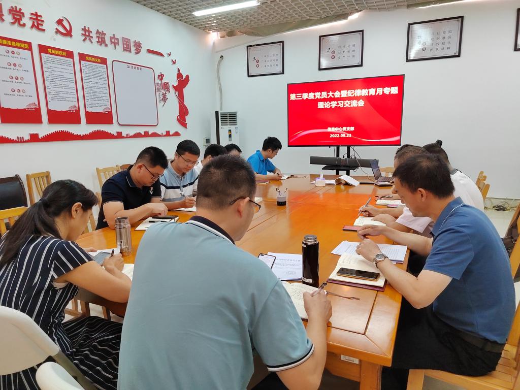 2022年9月23日,在第三季度党员大会暨纪律教育月专题理论学习交流会上,首先由孙远强同志领学第一议题学习内容“习近平总书记在十九届中央纪委六次全会上的重要讲话精神”。随后,黄科同志领学“习近平总书记关于党的自我革命战略思想”;陶影同志领学“习近平总书记关于廉洁文化及师德师风的重要论述精神”等内容。