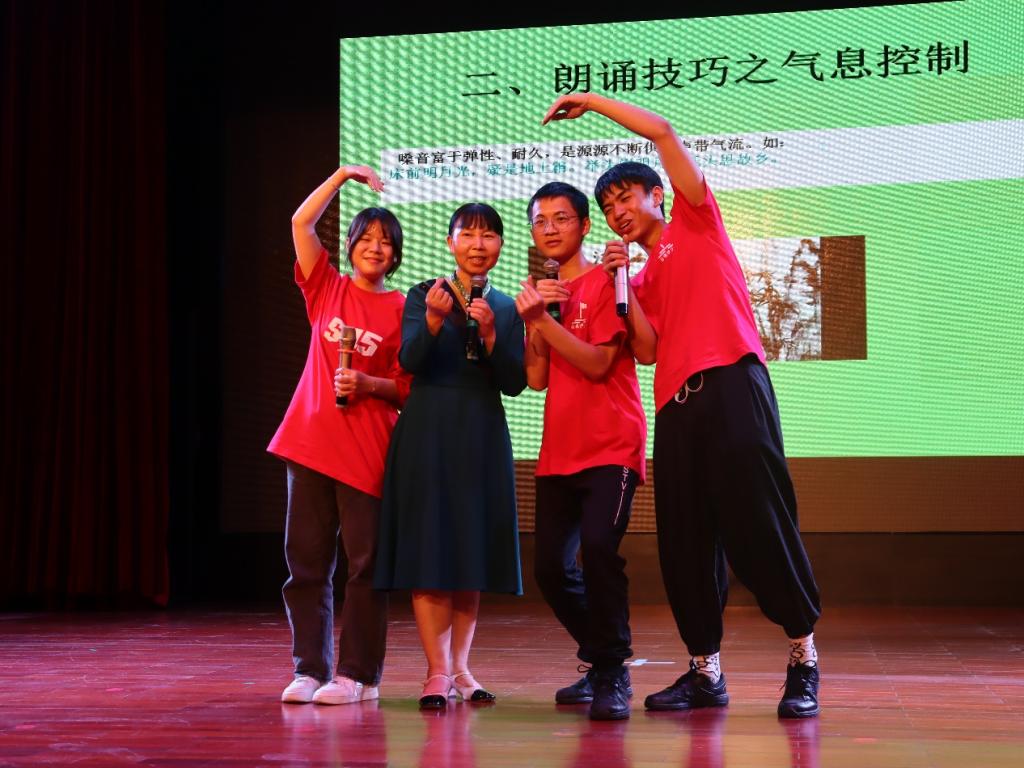 讲座从对朗诵的初步了解、共鸣控制训练、声音的特性等角度出发,深入浅出地引导学生对朗诵技巧的学习。郑尔君老师风趣幽默的授课风格,瞬间带动在场的所有人。郑老师表示,胸腹联合呼吸法讲究快吸慢呼,即快速短促地吸气并保持呼吸,呼气时缓缓呼出,配合声音,平稳均匀。她用渊博的专业知识和通俗易懂的语言,在潜移默化中激发了学生对朗诵的兴趣。