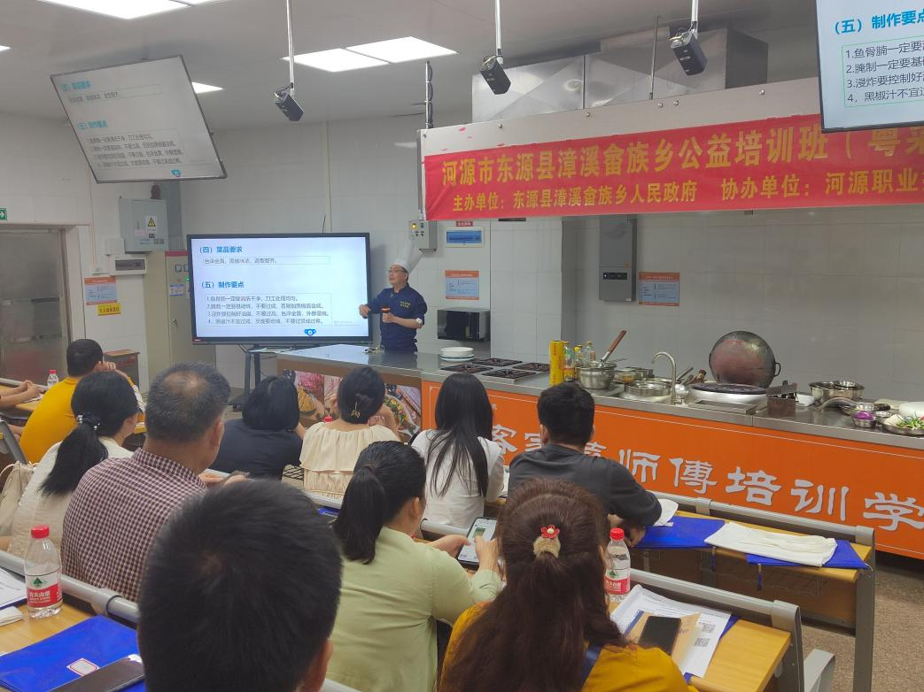 为贯彻落实《中共广东省委广东省人民政府关于推进乡村振兴战略的实施意见》等文件精神,4月21日至23日,由东源县漳溪畲族乡人民政府主办、mksports官方网站登录入口客家菜师傅培训学院承办的2022年“粤菜师傅工程”乡村从业人员烹饪技能提升服务培训班在河职院客家菜师傅培训学院顺利开班。培训班通过开展客家师傅技能培训,进一步培养客家菜烹饪技能人才,助力农村产业振兴和技能扶贫,弘扬客家饮食文化。