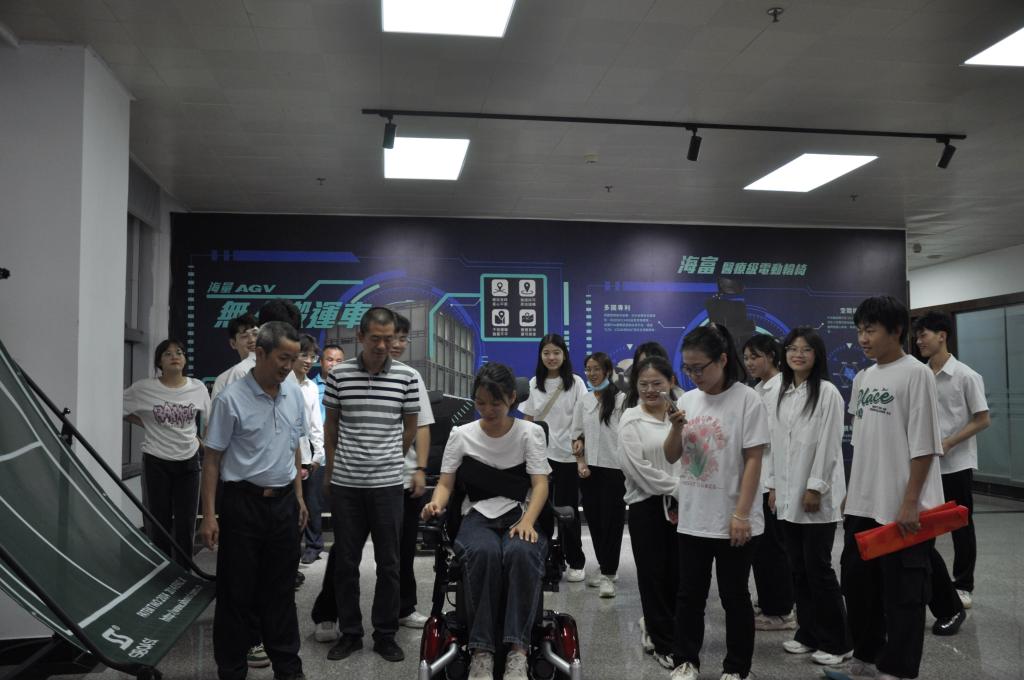 我校师生代表先后参观了悦斯莱特灯饰照明(河源)有限公司、瑞信五金(河源)有限公司、广东海量创新科技有限公司等三家高新区台资企业。在企业老总和部门负责人的带领下,师生们先后参观了企业生产车间、技术研发室、创新产品展区等。与瑞信五金(河源)有限公司赵恺文总经理等领导在会议室进行座谈,详细了解企业薪资待遇、生活设施、岗位晋升等信息。耐心聆听了广东海量创新科技有限公司产品和发展历程介绍,体验公司创新产品AGV无人搬运车、电动轮椅和智能化羽毛球训练场地等创新成果。