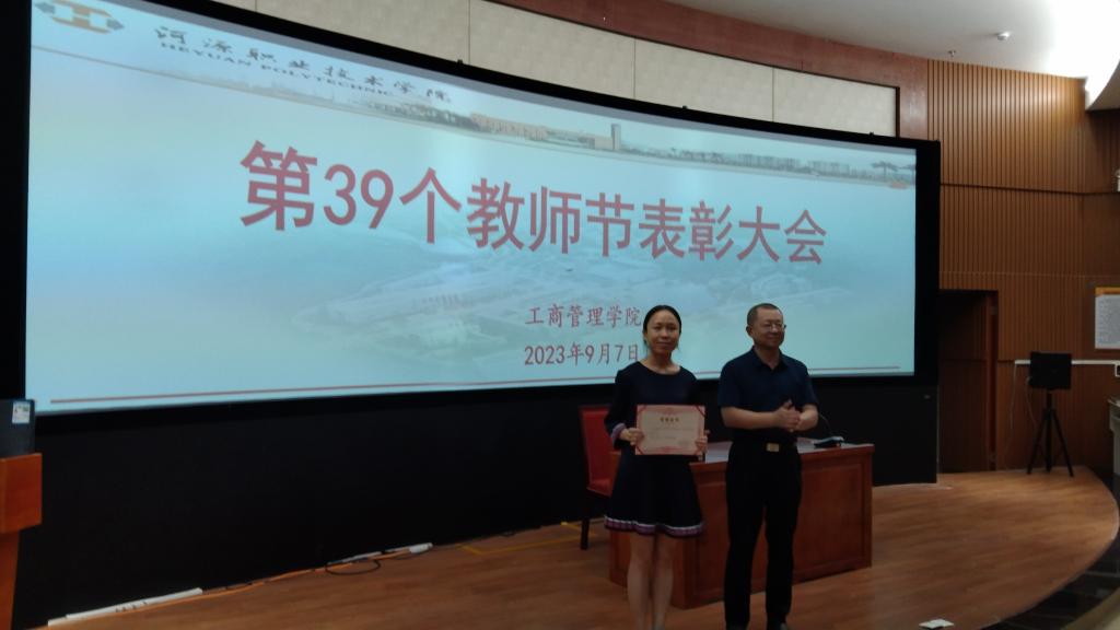 9月7日,工商管理学院在实训三期3D导游模拟实训室召开第39个教师节表彰大会。学院全体教职工参加活动。