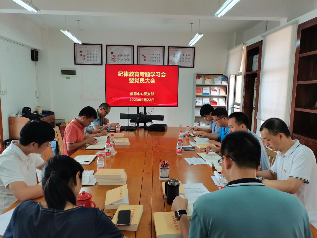 2023年9月22日,信息中心党支部召开纪律教育专题学习会暨党员大会。会上,首先由黄锦捷同志领学第一议题《论党的自我革命》“全面从严治党开辟了百年大党自我革命新境界”。随后,围绕纪律教育月专题学习,高源顺同志领学“习近平总书记关于全面从严治党的讲话精神”;陶影同志领学“习近平总书记关于廉洁文化及师德师风的重要论述精神”等内容;党员同志交流心得体会。会上还观看了廉政警示教育片。