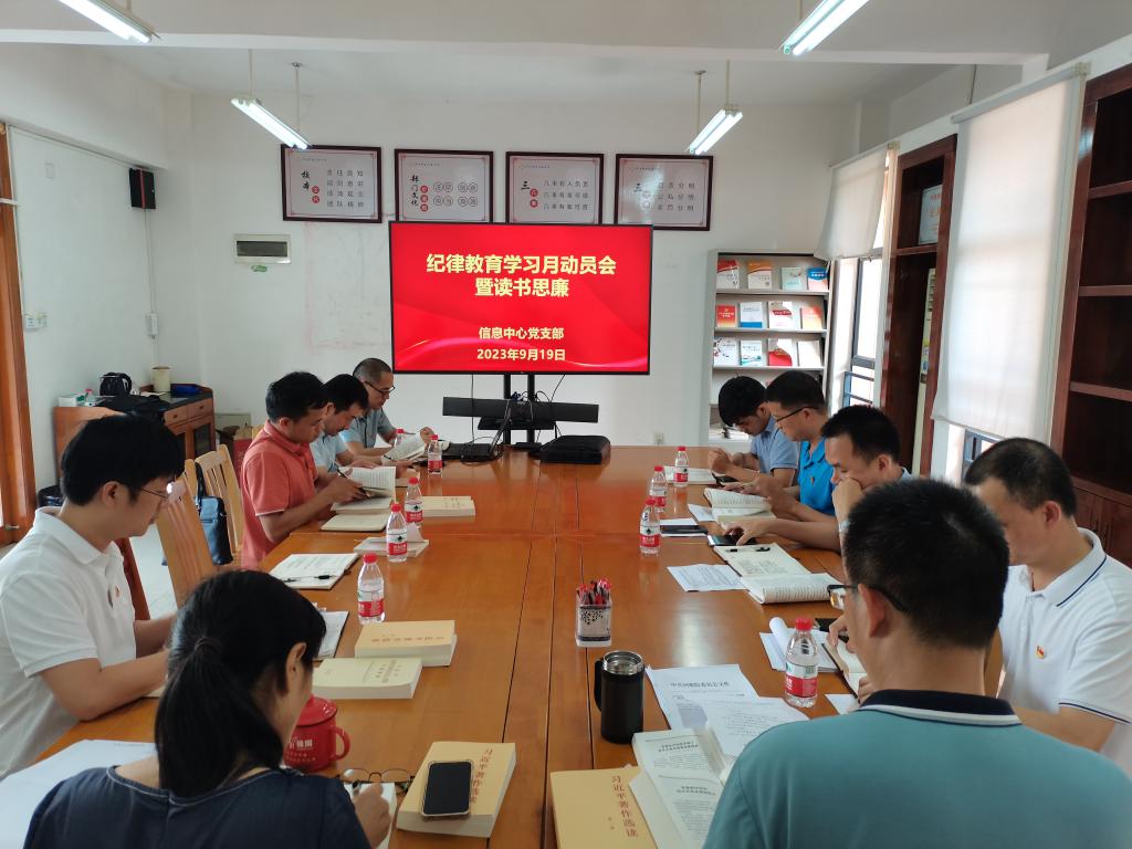 2023年9月19日,信息中心党支部在信息中心会议室召开2023年纪律教育学习月动员会暨读书思廉。会上,首先由孙远强同志领学第一议题学习内容“学习习近平总书记在二十届中央纪委二次全会上的重要讲话精神”。随后,支部书记杨文同志解读《2023年mksports官方网站登录入口开展纪律教育学习月活动的实施方案》,并对支部开展纪律教育学习月活动作出具体的动员部署。读书思廉交流会上,黄科同志领学《习近平著作选读》“发展数字经济,抢占未来发展制高点”,党员同志交流学习心得体会。
