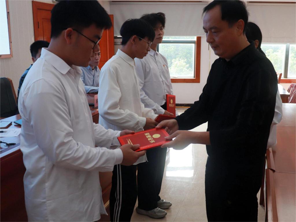 接着,钟建坤为优良学风班级代表颁发证书,黄亮为优良学风个人代表颁发证书,廖晓明为学习标兵代表颁发证书。