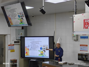 演练分为厨房生产安全培训、消防安全讲解和师生消防安全演练三个环节。演练开始前,杨锦冰、黄勇强老师分别为22级烹饪工艺与营养专业学生开展厨房生产安全知识培训,使学生充分了解厨房生产安全中常见安全问题与突发事故的处理方法,以相关案例警示学生,要求学生牢固树立我懂安全、我要安全、牢记安全的责任意识。