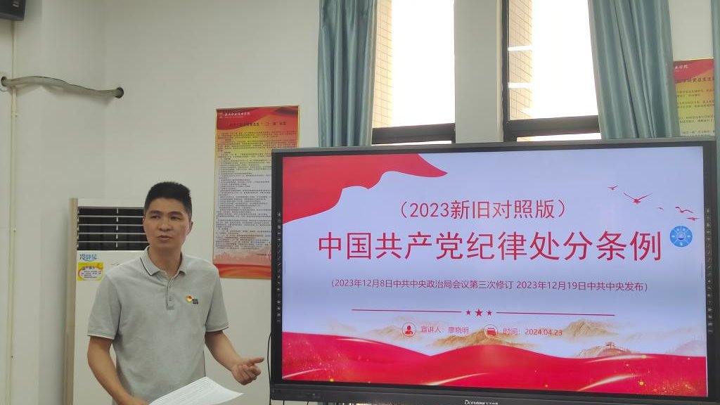 首先,党总支纪检委员廖晓明同志带领党员同志对《中国共产党纪律处分条例》(以下简称《条例》)新增、修改和删除的内容进行了全面细致的解读,帮助大家进行了深入理解和把握。