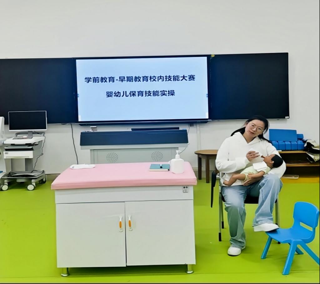 课件制作与命题画项目同样亮点纷呈,选手们充分运用了现代教育信息技术和绘画技能,精心制作出了内容丰富、形式多样的课件和画作。而在婴幼儿保育技能实操项目中,选手们更是展现出了对婴幼儿保育工作的专业素养与人文关怀,他们准确识别婴幼儿需求,迅速有序进行生活照护,操作流程科学正确、安全卫生。