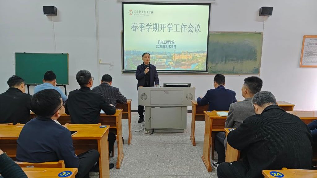 2月21日上午,机电工程学院在实训楼D508召开2025年春学期开学工作会议,学校党委副书记、纪委书记钟茂开及学院体教职工参加会议。会议由钟建坤院长主持。