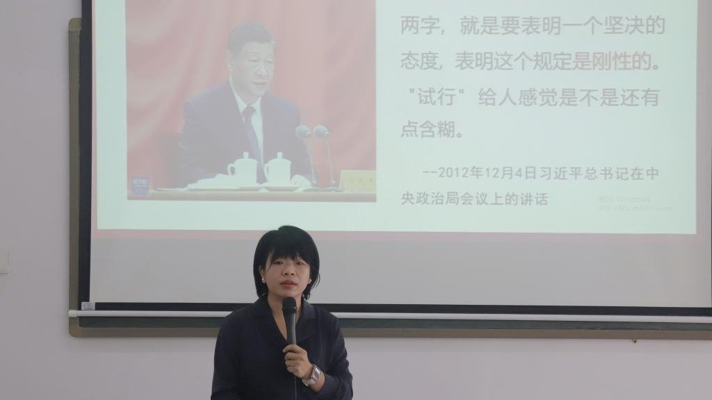 陈慧枫副教授从中央八项规定精神的诞生背景切入,深入阐释其核心内容与深远意义。在讲解具体内容时,她围绕精简文件简报、规范出访活动、改进警卫工作等八个关键维度层层递进,结合丰富详实的案例与鞭辟入里的分析,生动展现了党对工作作风的严苛要求。她强调,中央八项规定精神旨在切实提升工作效率,坚决遏制铺张浪费之风,重塑党在人民群众心中廉洁高效、亲民务实的良好形象。对于党员而言,八项规定精神绝非流于形式的政治口号,而是检验党性修养的一面明镜、衡量作风建设的一把标尺,更是一场从思想到行动的深刻自我革新。