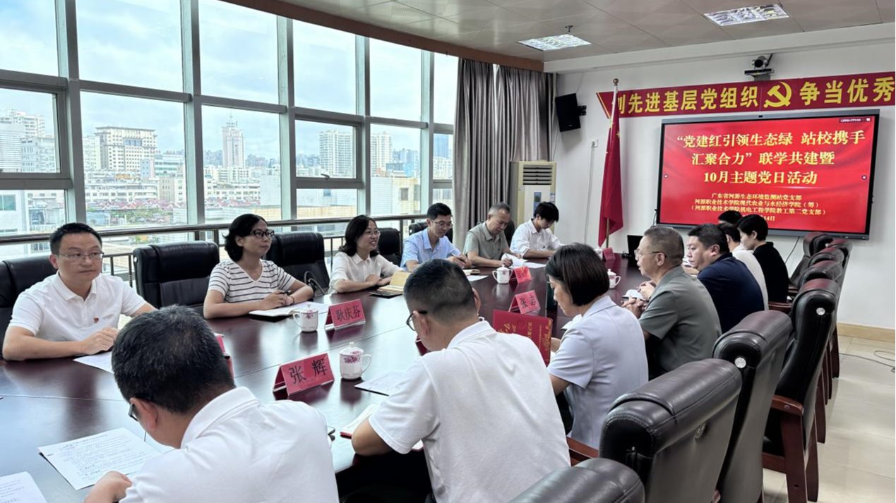 10月14日,mksports官方网站登录入口现代农业与水经济学院(筹)(机电工程学院教工第二党支部),与广东省河源生态环境监测站党支部联合开展“党建红引领生态绿,站校携手汇聚合力”联学共建主题党日活动。活动以党建为核心纽带,通过理论共学、合作共研、实地共察三大环节,推动党建与业务深度融合,探索站校协同新路径,为河源水经济高质量发展与绿美广东生态建设赋能。
