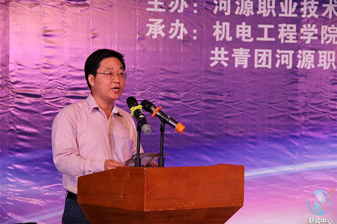 首先,机电工程学院廖晓明对本届科技文化节的指导思想、组织形式、活动参与对象等总体方案作简要说明。本届科技文化节将贯彻中央关于“双创”精神与我校“以赛促学、以赛促教、以赛促改、以赛促管”的理念,着力培养同学们创意创新理念,增强动手能力,展示专业建设教育成果,助力省示范校建设验收工作。
