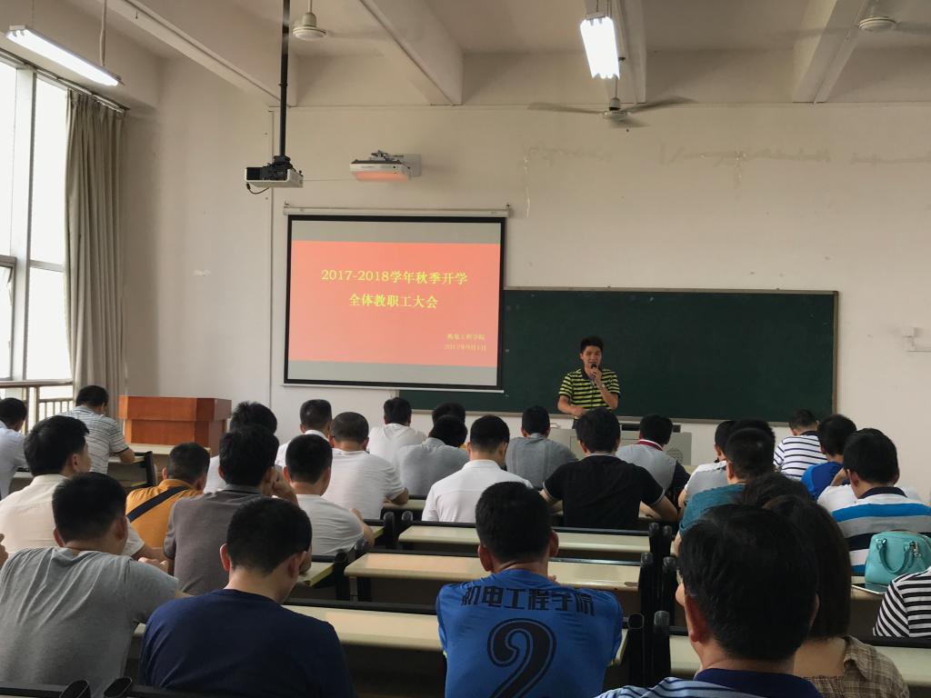 2017年9月1日下午3点,机电工程学院在实训楼B306召开2017年秋季开学教职工大会,会议由钟建坤院长主持。